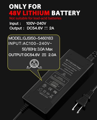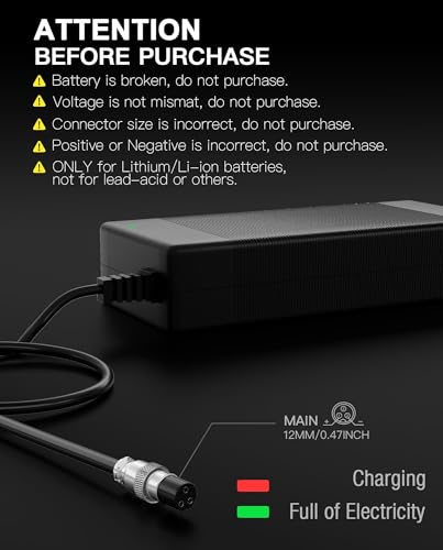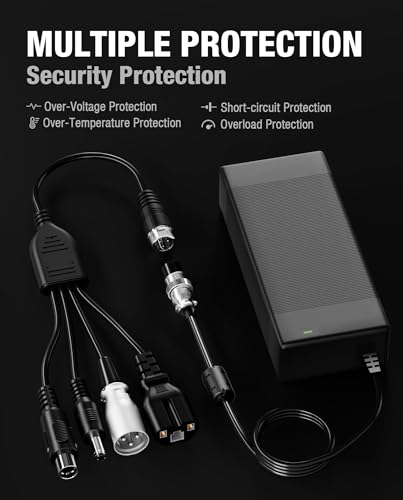 5 Connectors Included: Pay for one charger, get five connectors—GX16, DC5.5-2.5/2.1, IEC, RCA, and XLR. Perfect for 48V e-bikes, wheelchairs, ATVs, and more.