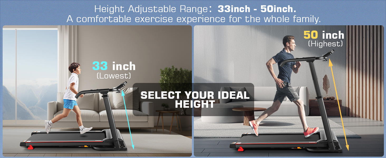 🏆 IDEAL FOR EVERY AGE & FITNESS GOAL ➤➤Upgrade your treadmill from wobbly walking pads to a 300+ lbs weight-capacity model designed for seniors, kids, and everyone in between! With an adjustable height (33.5″–49.9″), it ensures perfect ergonomics, while the 26.2″ x 13″ desktop lets you work, walk, or binge-watch without skipping a workout.