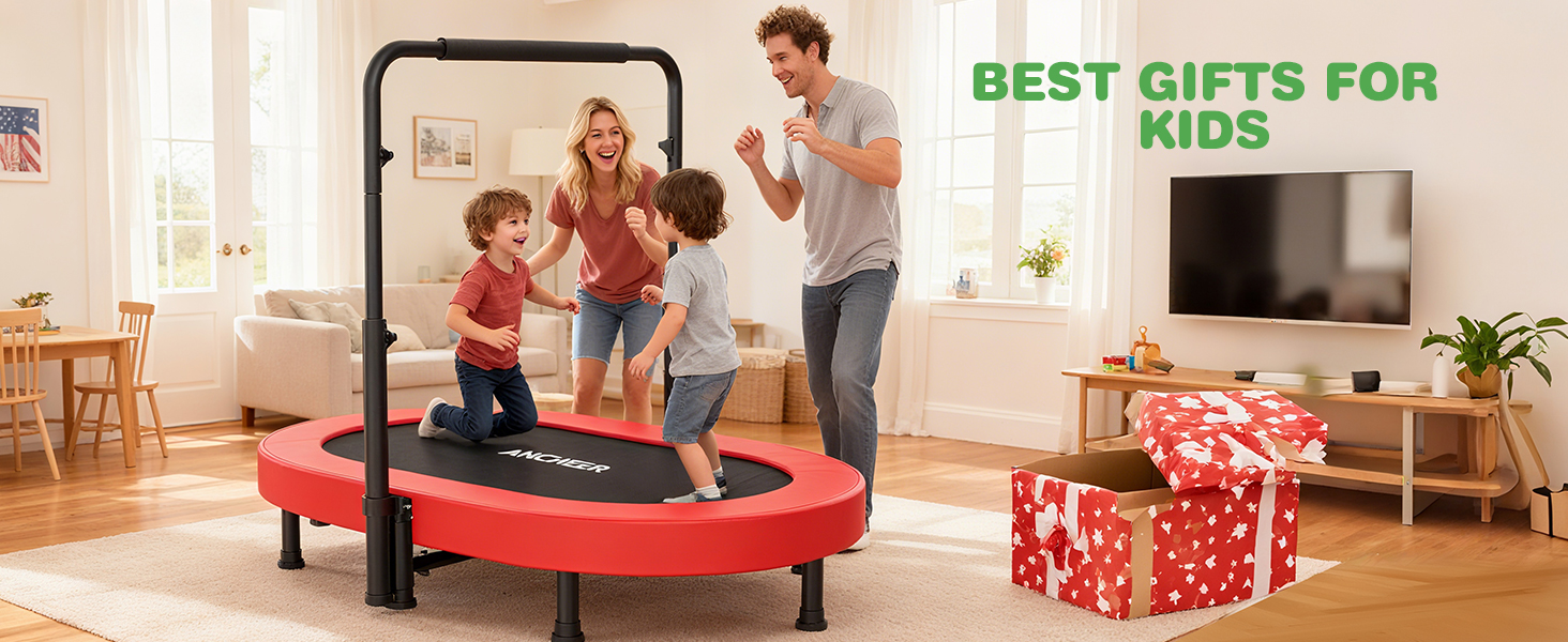 Are you looking for a gift that combines joy and health for your kids? The ANCHEER indoor trampoline is perfect! It helps children develop their bouncing skills, coordination, balance, and physical control while they play. Perfect for injecting fun into family fitness at home!