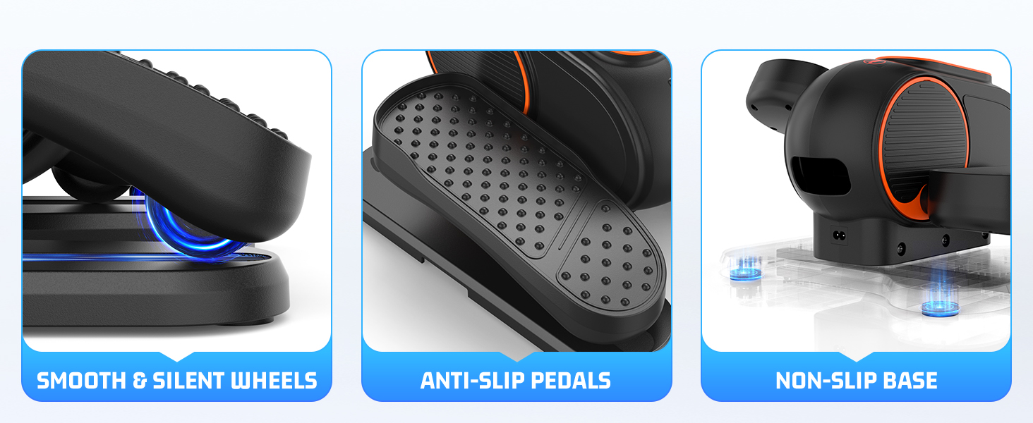 Unlike a linear exerciser, our non-slip pedals can move in both forward and reverse motion. Forward motion targets your calves, thighs, and hip flexors, while reverse motion engages your hamstrings and glutes, ensuring a well-rounded leg workout and rehabilitation.
