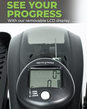 The large 6-function LCD display tracks revolutions, RPM, time, and calories burned—perfect for monitoring your progress. Plus, the display is easy to remove and set up on your table with the included stand. Set up and operation are a breeze.