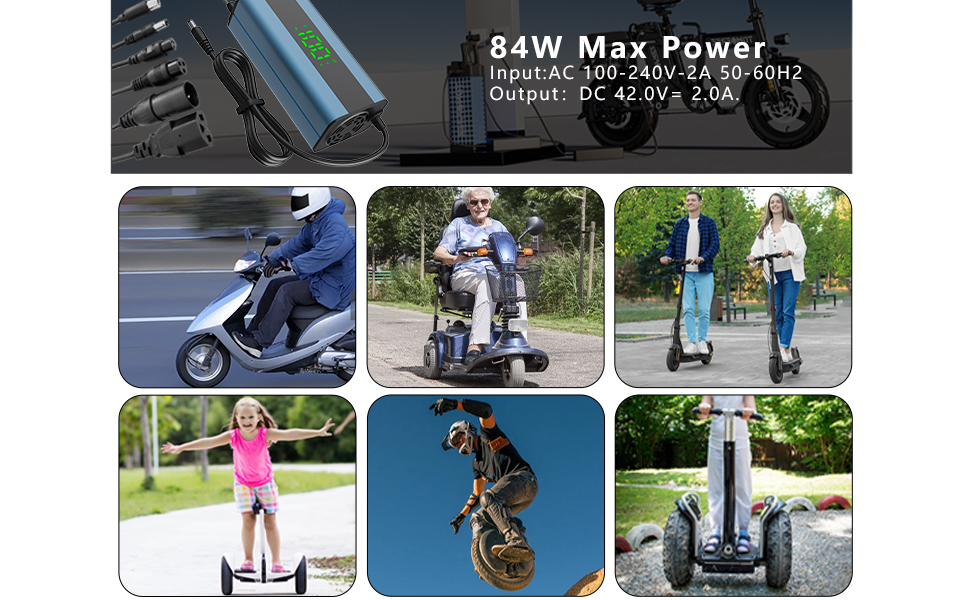 Equipped with 5 different charging adapters, this charger is compatible with a wide range of electric scooters and bikes. Whether you have a 42V or 54.6V battery system, this charger ensures hassle-free charging for multiple vehicle models.