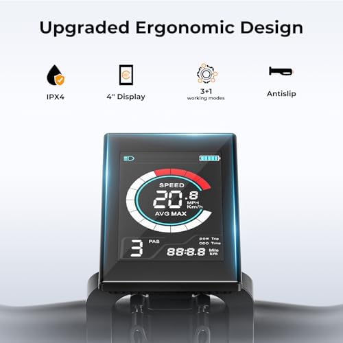 The EB5 electric bike comes equipped with a powerful 750 W peak motor, ensuring a top speed of 20 MPH. This makes commuting or tackling that scenic route a breeze. Its upgraded LCD display offers adjustable backlight brightness from 1 to 5 levels, and provides essential riding data such as ODO, MAX, and AVG speed.