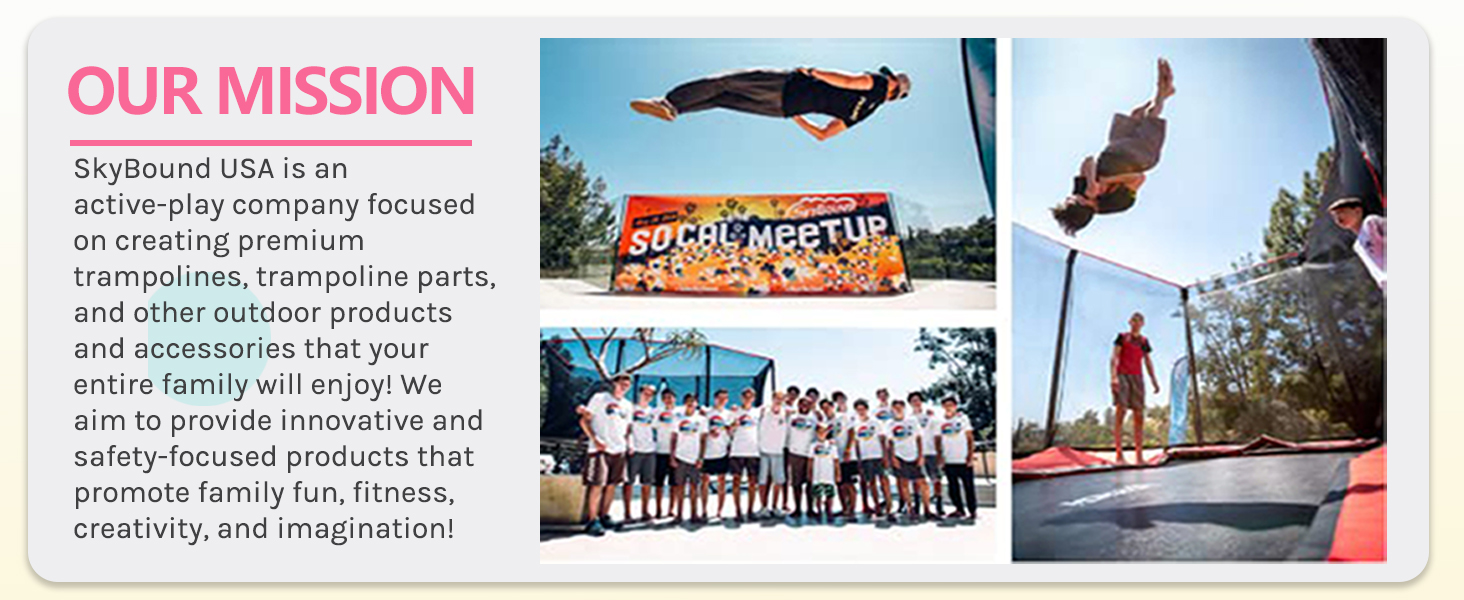 [ Superior Safety ] At SkyBound USA, we prioritize safety without compromising on fun. The SkyBound Mini trampoline features a thick PVC safety pad, extra thick coil springs, and seven legs for added protection. Additionally, the handlebar is foam-covered and galvanized steel, ensuring safety and durability.