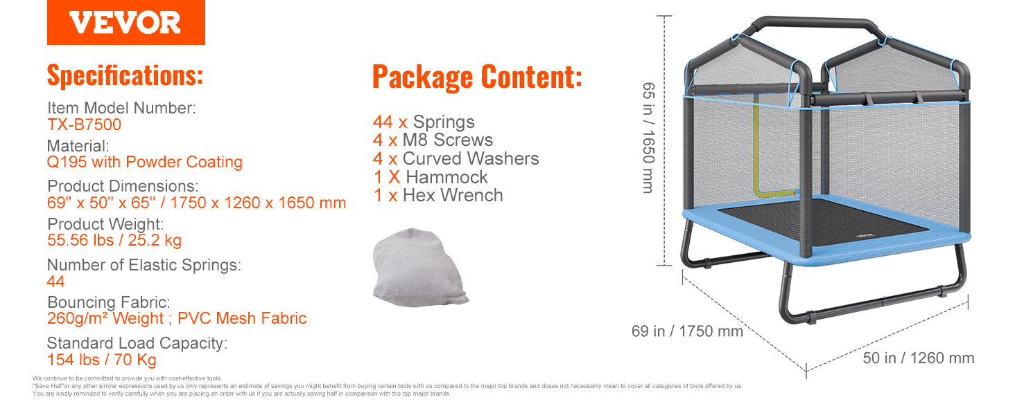 Equipped with a 360° safety enclosure net and 44 top-quality springs with a 220 LBS max weight capacity, our trampoline ensures every jump is joyful and secure. Additionally, the 0.24-inch thickened sponge pad eliminates gaps between springs and mat, providing added safety.