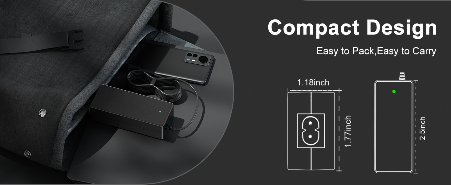 - Output Specifications: DC 42V 2A, with a 10ft long power cord and a US standard plug.